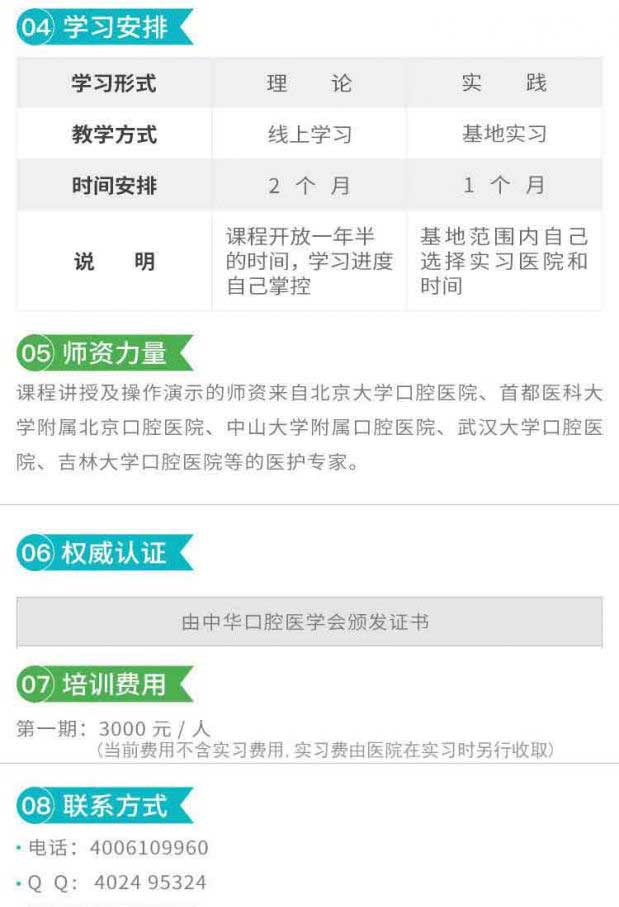 口腔专业护士一期课程 3000元