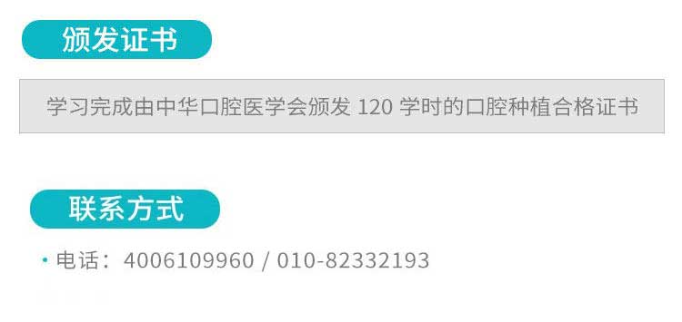 学习完成由中华口腔医学会颁发120学时的口腔种植合格证书